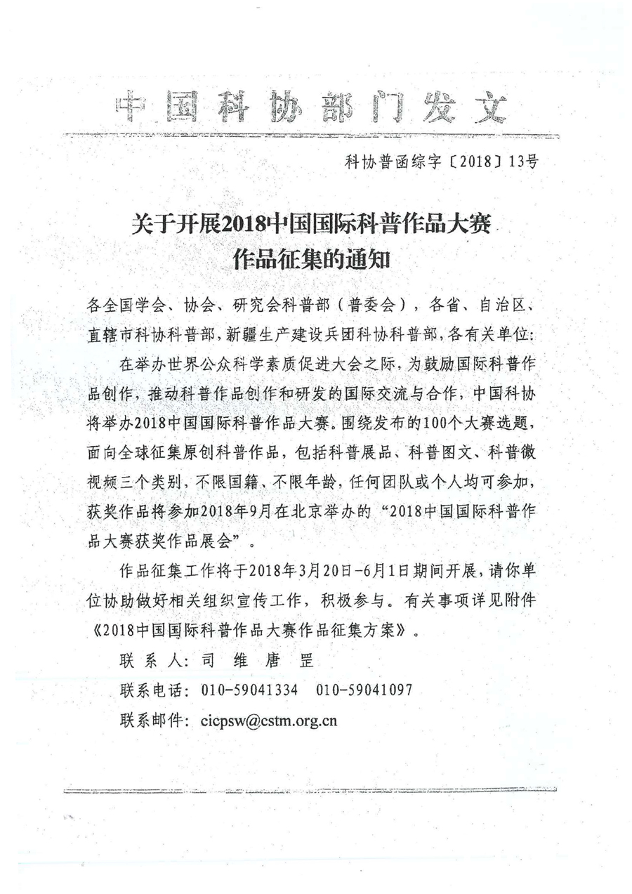 通知 | 中国科协开展2018中国国际科普作品大赛作品征集