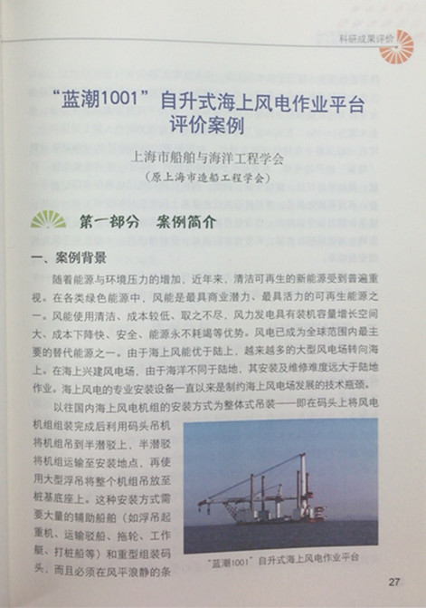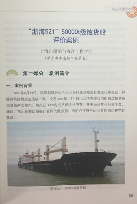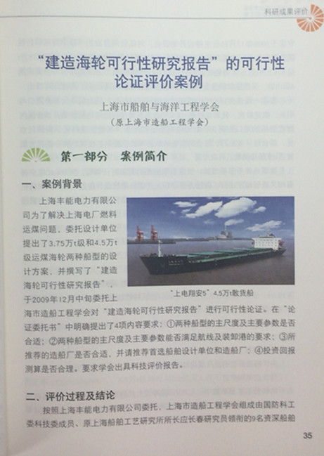 去年10月,我会按照上海市科协《关于征集科技评价典型案例的通知》精神,撰写的“蓝潮1001”自升式海上风电作业平台评价案例;集成式电液比例控制轻小型减摇鳍装置评价案例;“建造海轮可行性研究报告”的可行性论证评价案例;“浙海521”50000t级散货船评价案例4篇被收录到《上海市科学技术协会科技评价案例汇编》一书。上海市科协期望能抛砖引玉,求得同行和专家的批评与建议,更期望能通过阐释功能、梳理流程、规范体系,使所属科技社团有所示范和借鉴,更好地为企业科技创新服务。