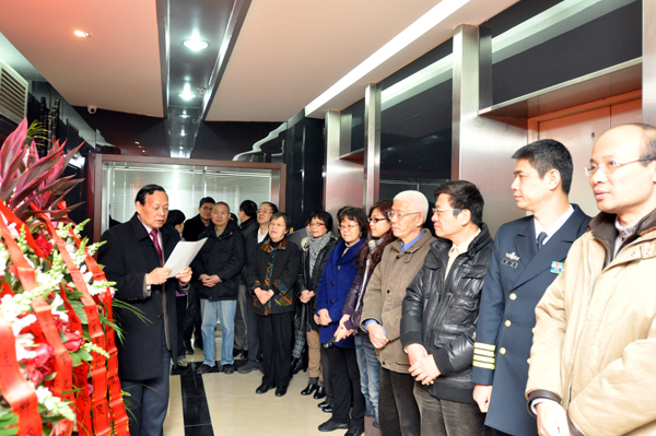 揭牌仪式由学会党的工作小组组长、副理事长周振柏主持,张圣坤理事长作了热情洋溢的致辞。他激情地说:这次办公室的搬迁是理事会的一致决定,学会从此有了一个现代化的办公室,有了一个自己的家,希望大家齐心协力,精诚团结,学习落实党的十八大精神,弘扬学会的传统文化,追求卓越,把学会的工作搞得更好,就像这大厦的名称一样,拼搏进取,大展鸿运!
