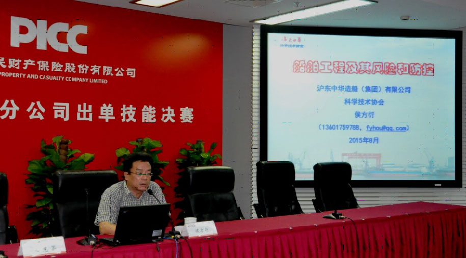 时间:2015/10/8 16:49:00 受上海市人民财产保险公司航运保险中心委托,我会组织工作委员会推荐沪东中华造船(集团)有限公司科协副主席兼秘书长候方洐先生于9月24日对该中心有关人员进行了题为《船舶工程及其风险和防控》的专题培训