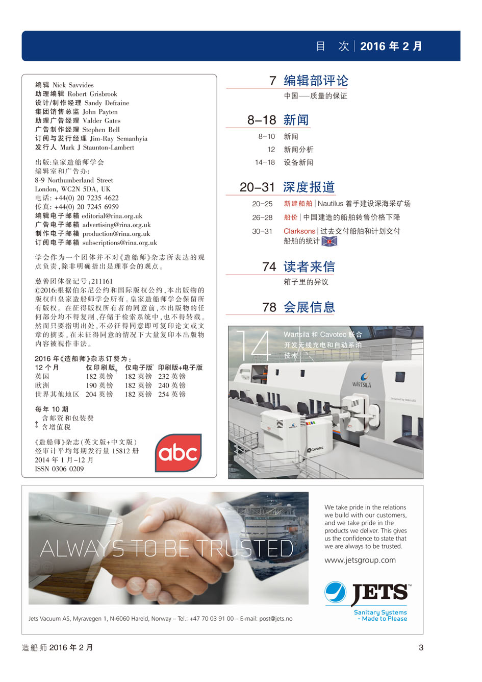 《造船师》为我会和英国皇家造船师学会合作翻译印刷,内部赠阅。