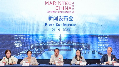 9月21日,2023年国际海事展新闻发布会在上海召开,海事展组委会主席邢文华先生、龚康康女士、丹麦驻上海总领事馆领事倪迈森先生、浦东新区商务委主任林廷钧女士、中船邮轮科技副总经理汪彦国先生出席了此次发布会,会议由中央广播电视台财经节目中心胡元女士主持。